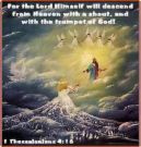 I Thessalonians 4:16, “For the Lord Himself will descend from Heaven with a shout with the voice of the archangel and with the trumpet of God, …”